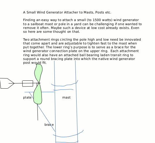 The wind generator blade would face the mast and it’s wind vein would keep the blade facing into the wind as it could circle around the pole with the vein downwind.
