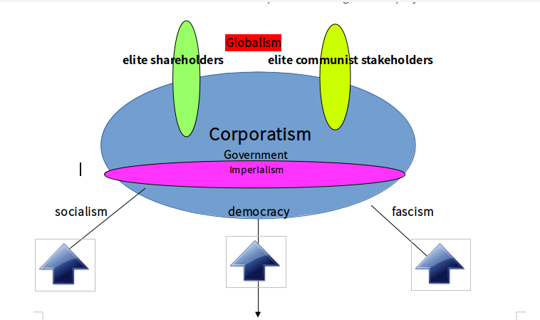 Corporatism as a global power association of the wealthiest plutocrats finds sycophantic government proxy rulers in any nation and form of government. Even Communist elites will find symbiotic stake holding in global corporate power.
