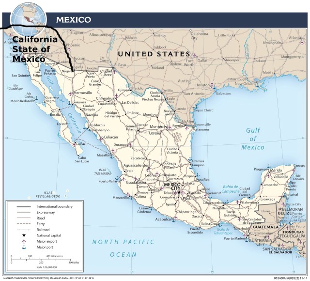 Image credit- modified C.I.A. map of Mexico showing the great location of the new property